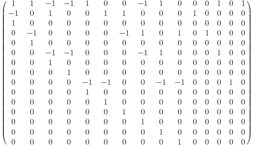 [0 1 1 0 0 0 -1 0 0 0 -1 -1 0 0 0]
