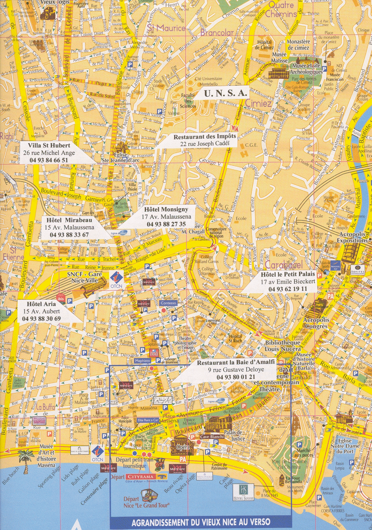 ou - Prendre le bus n. 98 jusqu'à "Cathédrale Vieille Ville", puis le Tram jusqu'à l'arrêt 'Valrose', puis à pied (avec les indications ci-dessus).
